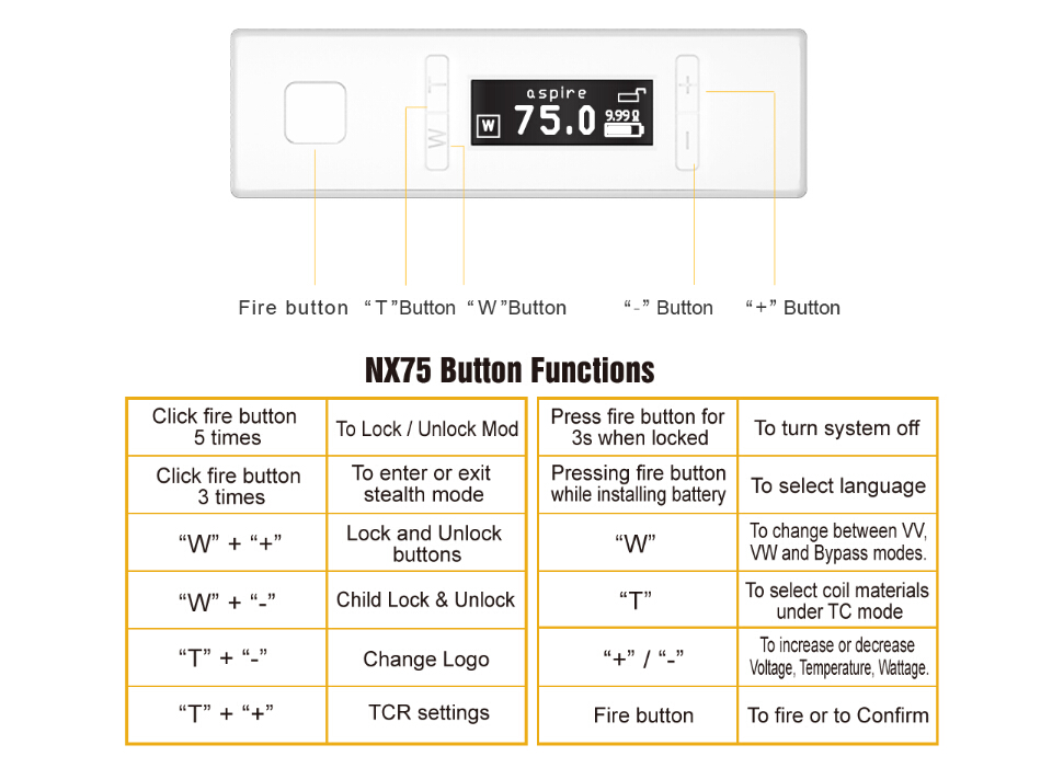 /NX75 Mod / Q&A / Aspire NX75 button fuctions