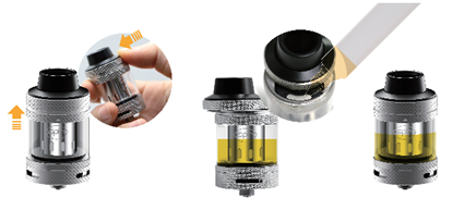 1) Pull up the top cap, place your thumb on the top cap right above the triangle symbol.